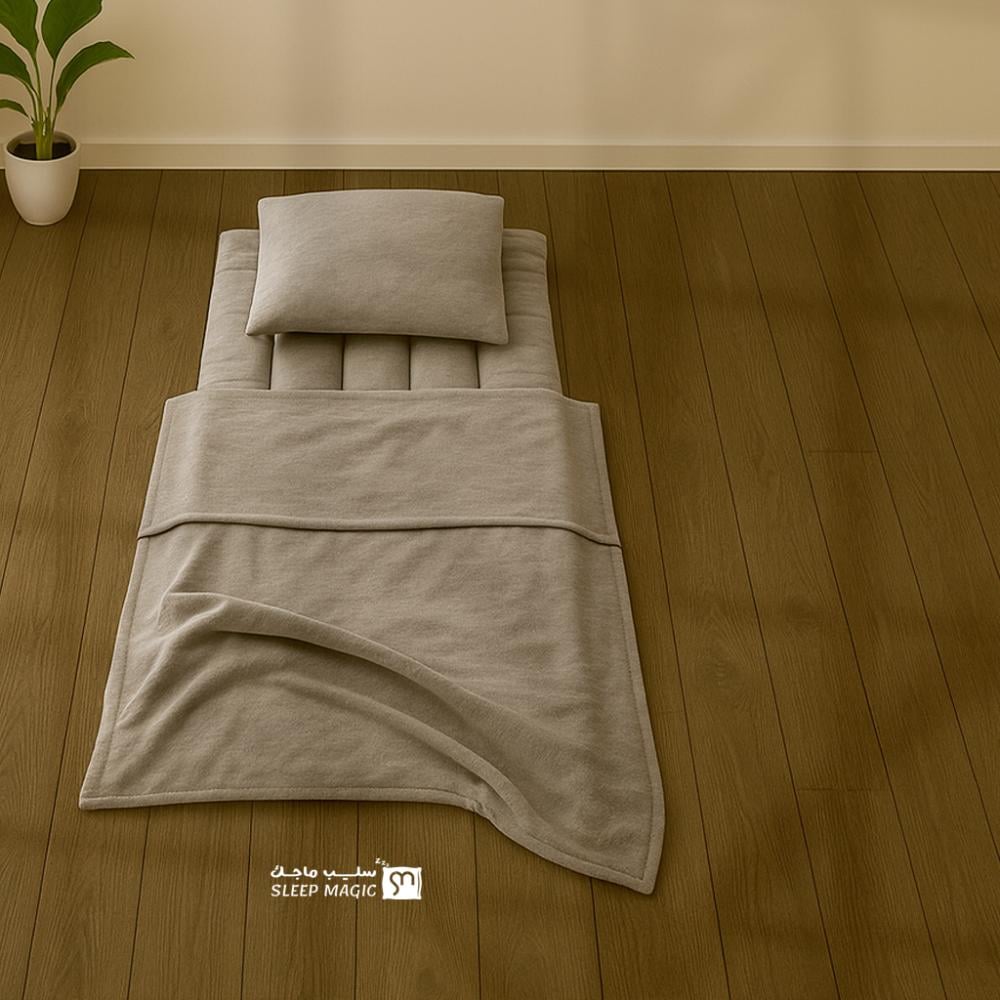 من خلال تصميمه المتكامل يصبح بكج الضيوف المتكامل من سليب ماجيك معك وين ما تروح سواء في المنزل أو أثناء السفر فهو عملي وخفيف الوزن وسهل الطي مما يوفر حلاً سريعاً لضيوفك دون الحاجة لأي تجهيزات إضافية ويمنحك راحة نفسية لأنك دائماً مستعد لاستقبال الضيوف بأفضل صورة